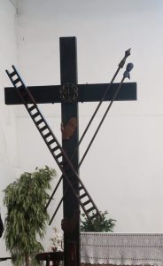 Els improperis són els instruments amb els quals es van fer burles, ofenses o retrets a Jesús durant la Passió: els claus que el van clavar a la creu, el gall que va cantar per les negacions de Sant Pere, la llança de Longuinus, la corona d’espines, el fuet de l’assotament, etc. Aquesta creu sortia en l’antiga processó de Balaguer i va ser trobada de manera casual en una casa abandonada del centre històric de Balaguer. Aquesta va ser restaurada conservant els colors originals i actualment obre la processó.
